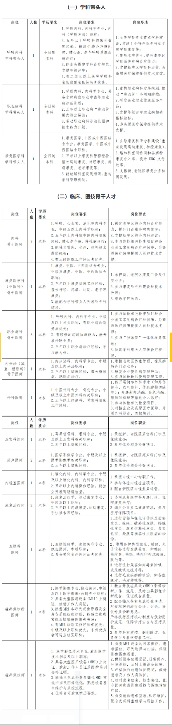 (二)临床、医技骨干人才