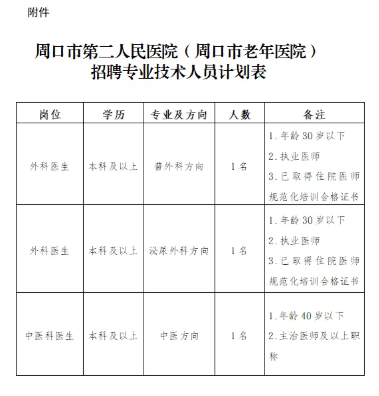 现场报名:周口市川汇区六一路中段七号周口市第二人民医院(周口市老年医院)四楼人事科。
